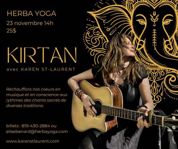 Le Kirtan (sanskrit : prier, glorifier) est une simple et merveilleuse façon de méditer et de célébrer la vie. Agréable et sans effort, la musique et les chants de mantras