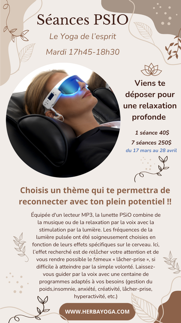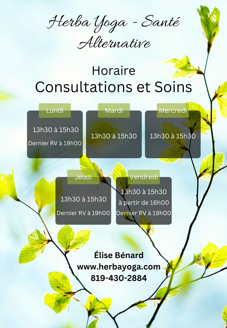 Afin d'atteindre vos objectifs, qu'ils soient physiques, émotifs, spirituels, professionnels, familiaux, relationnels... la consultation individuelle vous offre une approche individualisée, faite sur mesure. Sous forme de coaching en santé globale, plusieurs outils peuvent être utilisés afin de vous aider à atteindre vos buts. Que ce soit par le yoga, le mouvement, l'utilisation des plantes médicinales, des huiles essentielles, de l'alimentation, l'Ayurveda, le Reiki (traitement énergétique), la technique ''Aromatouch'', la technique ''Access Bars'', les processus corporels Access, la ''Cosmonergy'', la lumino-relaxo thérapie avec ''PSIO'', la thérapie sonore, les exercices de transformation personnelle, la relation d'aide, etc., l'objectif de la consultation est de répondre aux attentes et aux besoins de chaque individu afin d'amener ce dernier à accéder à un véritable mieux-être et mieux-vivre. Il s'agit d'un accompagnement dans le développement personnel de ceux et celles qui cherchent à :